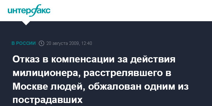 Отказ в компенсации за действия милиционера, расстрелявшего в Москве людей, обжалован одним из пострадавших