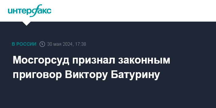 "Приговор Симоновского суда Москвы от 14 ноября 2023 года в отношении Батурина оставлен без изменений, апелляционные жалобы, поданные на приговор, - без удовлетворения", - заявили в пресс-службе в четверг.