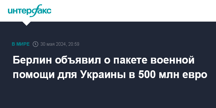 Москва. 30 мая. INTERFAX.RU - Министр обороны ФРГ Борис Писториус объявил в четверг о выделении пакета военной помощи Украине, стоимость которого оценивается в 500 млн евро, сообщает агентство ЭФЭ.