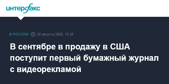 В сентябре в продажу в США поступит первый бумажный журнал с видеорекламой