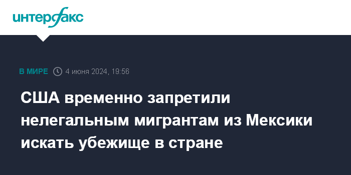 Москва. 4 июня. INTERFAX.RU - Президент США Джо Байден во вторник объявил о ряде мер, направленных на то, чтобы запретить мигрантам, незаконно пересекающим границу Мексики с Соединенными Штатами, получать в стране убежище.