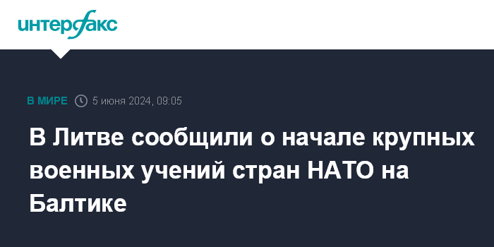 Москва. 5 июня. INTERFAX.RU - На Балтийском море 5 июня начинаются масштабные натовские учения BALTOPS 24, сообщили в Вооруженных силах Литвы.