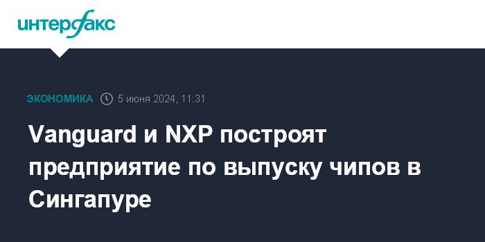 Москва. 5 июня. INTERFAX.RU - Тайваньская Vanguard International Semiconductor (VIS) и нидерландская NXP Semiconductors создают СП для строительства предприятия по выпуску чипов в Сингапуре стоимостью $7,8 млрд.