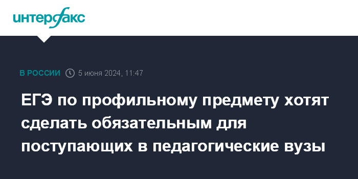 Москва. 5 июня. INTERFAX.RU - Минобрнауки РФ планирует со следующего года ввести обязательный ЕГЭ по профильному предмету при приеме в педагогические вузы, сообщил министр науки и высшего образования РФ Валерий Фальков.