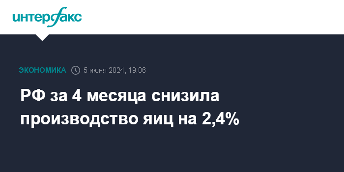 РФ за 4 месяца снизила производство яиц на 2,4%