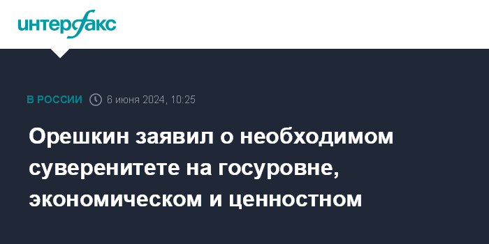 "С учетом того, что в мире происходит, я бы остановился на целях обеспечения суверенитета на трех уровнях: на государственном, на ценностном и экономическом", - сказал Орешкин, выступая на макроэкономической сессии в рамках ПМЭФ-2024 в четверг.