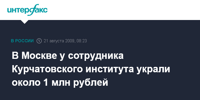 Москва. 21 августа. INTERFAX.RU - В Москве трое неизвестных ограбили ведущего научного сотрудника Российского научного центра имени Курчатова, сообщил "Интерфаксу" источник в правоохранительных органах.