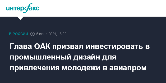 Глава ОАК призвал инвестировать в промышленный дизайн для привлечения молодежи в авиапром
