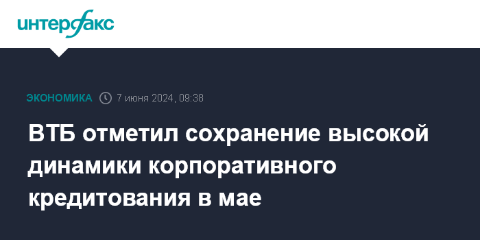 ВТБ отметил сохранение высокой динамики корпоративного кредитования в мае