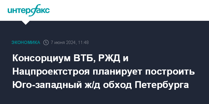 Консорциум ВТБ, РЖД и Нацпроектстроя планирует построить Юго-западный ж/д обход Петербурга