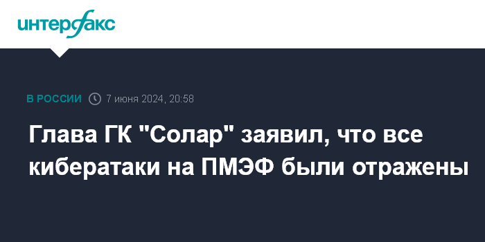 Глава ГК "Солар" заявил, что все кибератаки на ПМЭФ были отражены