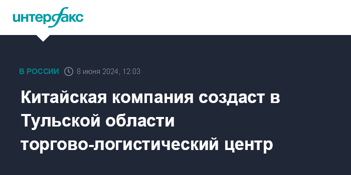 Китайская компания создаст в Тульской области торгово-логистический центр
