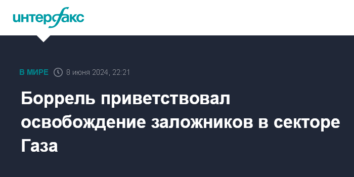 Москва. 8 июня. INTERFAX.RU - Глава дипломатии ЕС Жозеп Боррель приветствовал освобождение четырех израильских заложников из сектора Газа в результате операции Армии обороны Израиля (ЦАХАЛ).