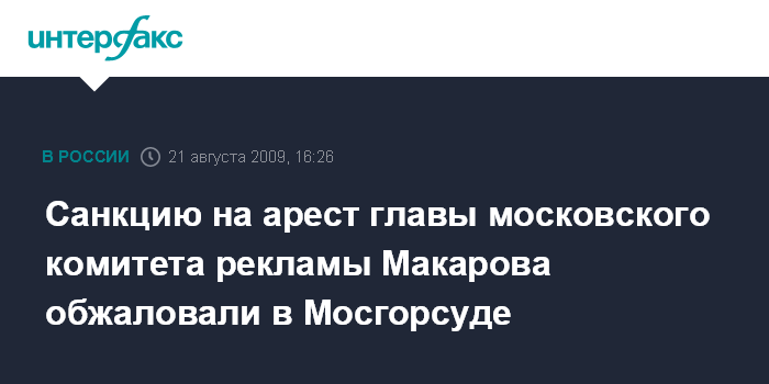 Санкцию на арест главы московского комитета рекламы Макарова обжаловали в Мосгорсуде