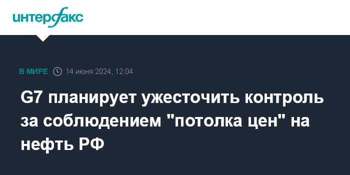 Москва. 14 июня. INTERFAX.RU - Лидеры стран G7 планируют договориться об ужесточении мер по соблюдению установленного ими "потолка цен" на российскую нефть. Об этом сообщает агентство Bloomberg со ссылкой на попавший в его распоряжение документ.
