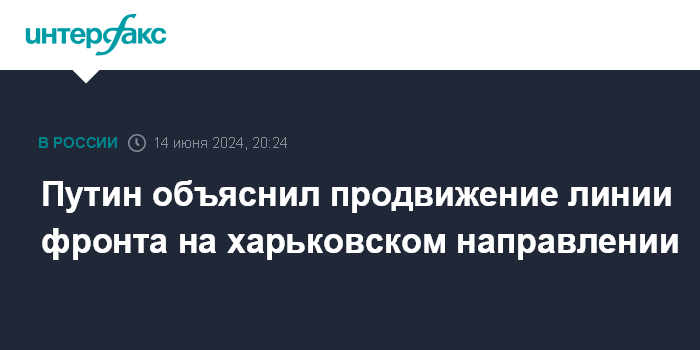 Москва. 14 июня. INTERFAX.RU - Россия вынуждена отодвигать линию фронта на харьковском направлении, чтобы снизить вероятность террористических ударов по Белгороду, заявил президент Владимир Путин на встрече с участниками программы "Время героев".
