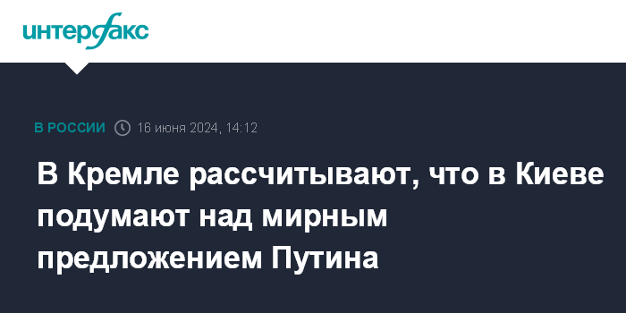 В Кремле рассчитывают, что в Киеве подумают над мирным предложением Путина