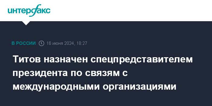 Титов назначен спецпредставителем президента по связям с международными организациями