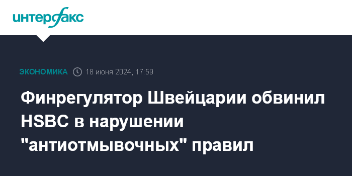 Финрегулятор Швейцарии обвинил HSBC в нарушении "антиотмывочных" правил