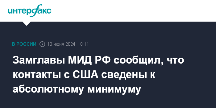 Москва. 18 июня. INTERFAX.RU - Контакты с США сведены к абсолютному минимуму по количеству и содержанию, заявил во вторник замглавы МИД РФ Сергей Рябков.