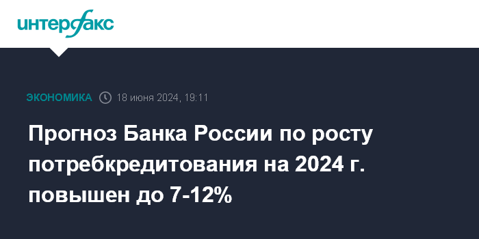 Прогноз Банка России по росту потребкредитования на 2024 г. повышен до 7-12%