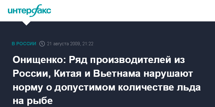 Онищенко: Ряд производителей из России, Китая и Вьетнама нарушают норму о допустимом количестве льда на рыбе