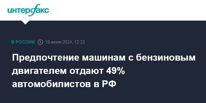 Москва. 19 июня. INTERFAX.RU - Около половины россиян (49%), у которых в семье есть как минимум один автомобиль, в случае покупки авто выбрали бы машину с бензиновым двигателем, свидетельствуют данные опроса ВЦИОМ, опубликованные в среду на сайте социологического центра.