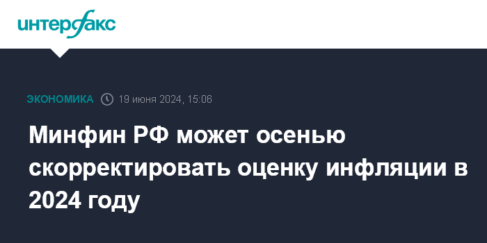 Минфин РФ может осенью скорректировать оценку инфляции в 2024 году