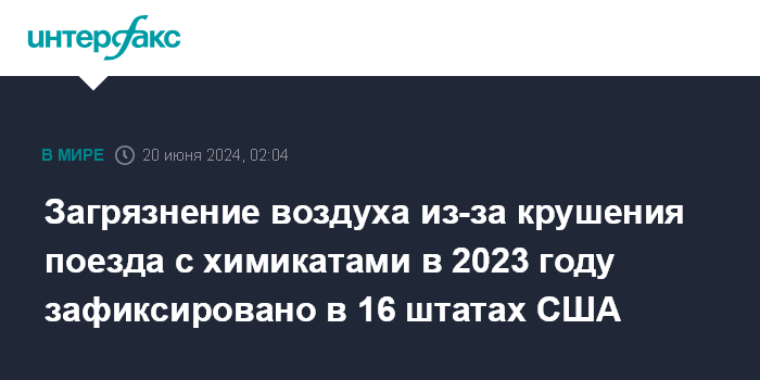 Загрязнение воздуха из-за крушения поезда с химикатами в 2023 году зафиксировано в 16 штатах США