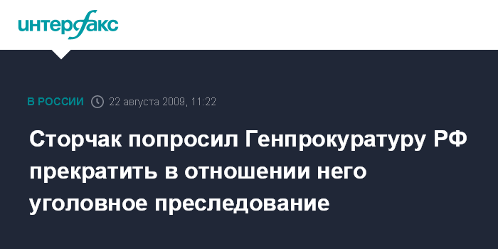 Сторчак попросил Генпрокуратуру РФ прекратить в отношении него уголовное преследование