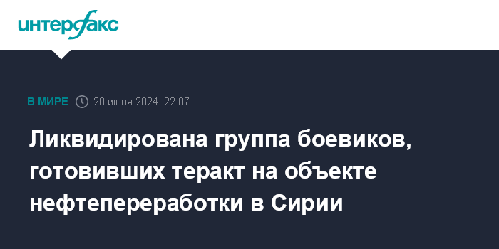 Ликвидирована группа боевиков, готовивших теракт на объекте нефтепереработки в Сирии