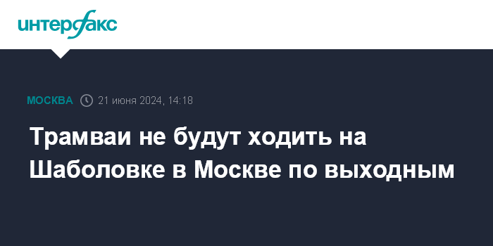"С 22 июня по выходным трамваи временно не будут ходить по Шаболовке (...) Изменения связаны с ремонтными работами на Шаболовке в рамках реконструкции трамвайного депо им. П.Л. Апакова", - говорится в сообщении.