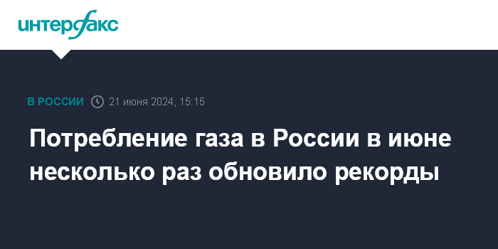 Потребление газа в России в июне несколько раз обновило рекорды