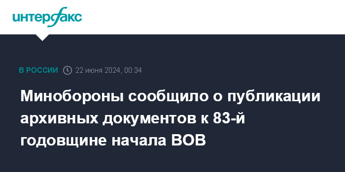 Минобороны сообщило о публикации архивных документов к 83-й годовщине начала ВОВ