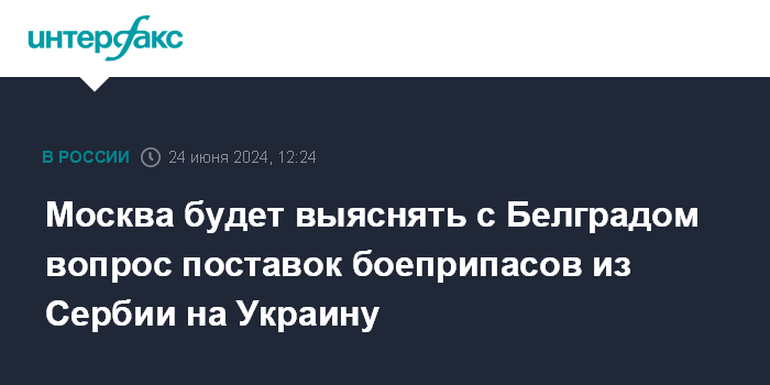 Москва. 24 июня. INTERFAX.RU - В Кремле видели сообщения о том, что Украина могла получать боеприпасы из Сербии через третьи страны, будут выяснять этот вопрос непосредственно с Белградом.