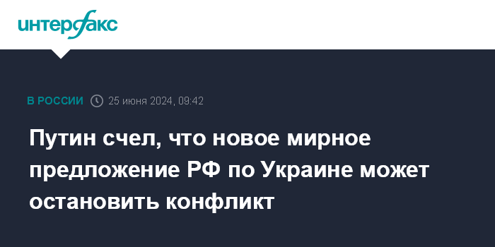 Путин счел, что новое мирное предложение РФ по Украине может остановить конфликт
