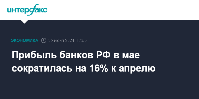 Прибыль банков РФ в мае сократилась на 16% к апрелю
