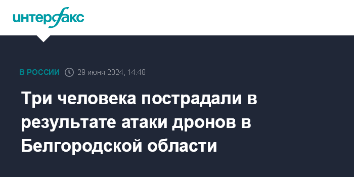 Москва. 29 июня. INTERFAX.RU - Губернатор Белгородской области Вячеслав Гладков сообщил о двух пострадавших в результате атаки украинских беспилотников в селе Богун-Городок Борисовского района и об одном раненом на участке автодороги Зиборовка - Нечаевка.