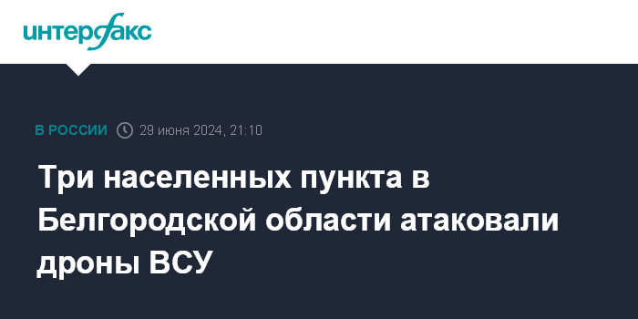 Москва. 29 июня. INTERFAX.RU - Губернатор Белгородской области Вячеслав Гладков в субботу вечером сообщил еще о трех атаках со стороны Вооруженных сил Украины при помощи беспилотников, пострадавших нет.