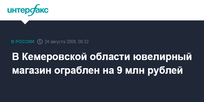 Кемерово. 24 августа. INTERFAX.RU - Правоохранительные органы Кемеровской области ищут злоумышленников, ограбивших в понедельник утром ювелирный магазин.