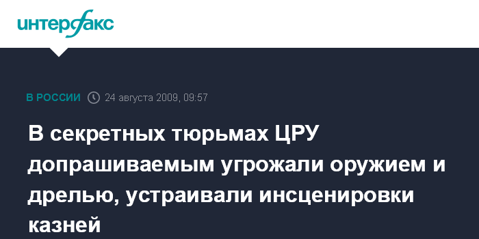 Москва. 24 августа. INTERFAX.RU - Сотрудники ЦРУ при допросах предполагаемого члена "Аль-Каиды" угрожали ему огнестрельным оружием и электрической дрелью, чтобы вынудить допрашиваемого предоставить интересующую спецслужбы информацию, сообщает телекомпания Си-Эн-Эн.