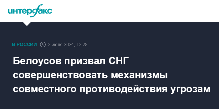 Белоусов призвал СНГ совершенствовать механизмы совместного противодействия угрозам