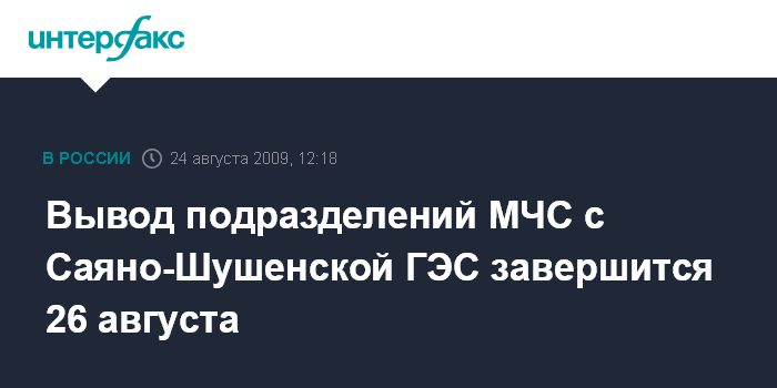 "26 числа (августа - ИФ) мы завершаем вывод подразделений сил МЧС России и передаем объект прибывающим подразделениям министерства энергетики", - сказал С.Шойгу.