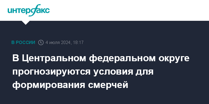 Москва. 4 июля. INTERFAX.RU - Усиление ветра до 27 м/с прогнозируется в регионах Северо-Западного федерального округа и Центрального федерального округа, возникнут условия для формирования смерчей, сообщил "Интерфаксу" научный руководитель Гидрометцентра России Роман Вильфанд.