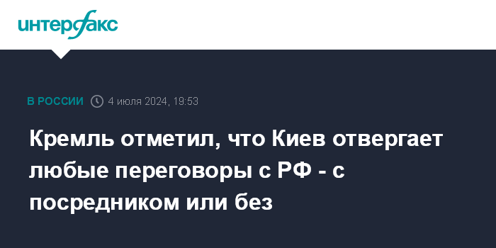 Кремль отметил, что Киев отвергает любые переговоры с РФ - с посредником или без