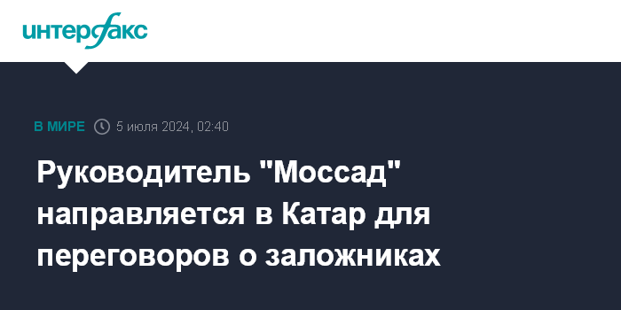 Руководитель "Моссад" направляется в Катар для переговоров о заложниках