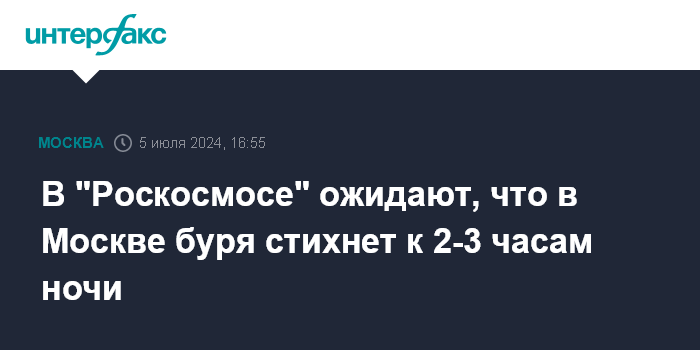 В "Роскосмосе" ожидают, что в Москве буря стихнет к 2-3 часам ночи