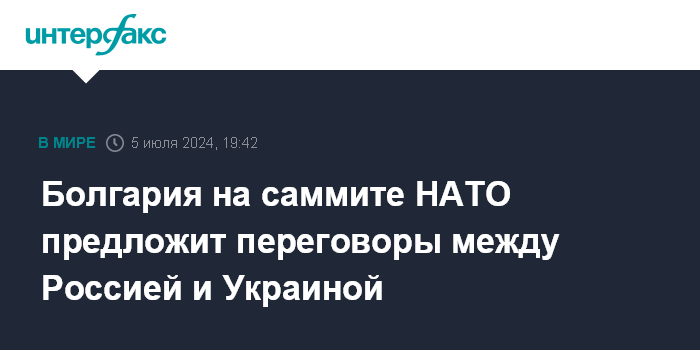 Москва. 5 июля. INTERFAX.RU - На саммите НАТО в Вашингтоне Болгария намерена выступить с предложением о переговорах между Россией и Украиной, на которых София взяла бы на себя роль посредника, заявил и.о. премьер-министра страны Димитар Главчев. Его слова приводит Болгарское национальное радио.
