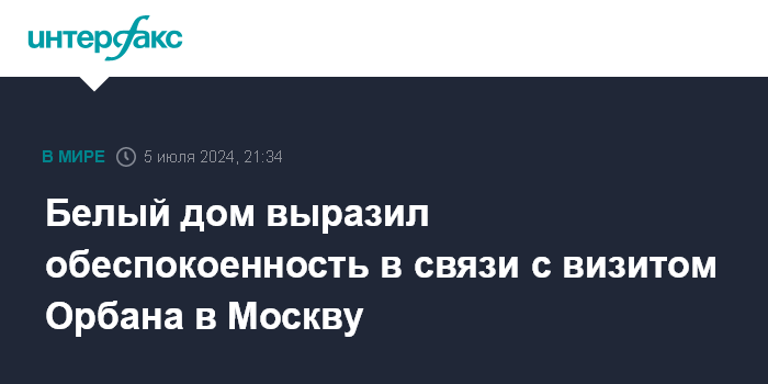 Москва. 5 июля. INTERFAX.RU - В Вашингтоне обеспокоены визитом премьер-министра Венгрии Виктора Орбана в Москву и считают его контрпродуктивным, заявила представитель Белого дома Карин Жан-Пьер.