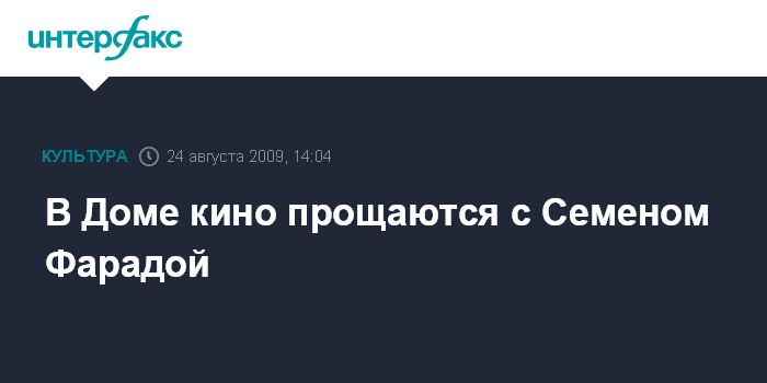Москва. 24 августа. INTERFAX.RU - Сотни людей пришли в понедельник в московский Дом кино, чтобы проститься с народным артистом России Семеном Фарадой, который скончался 20 августа на 76-м году жизни.